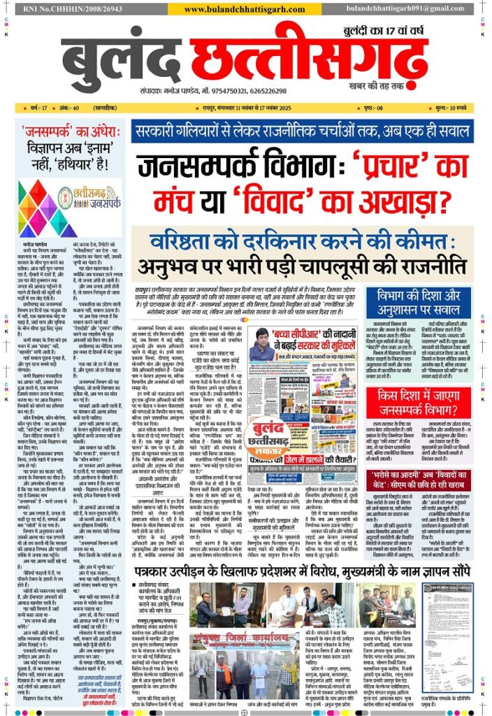 मुख्यमंत्री विष्णुदेव साय ने जिस भरोसे के साथ डॉ. मित्तल को आगे बढ़ाया था, वही भरोसा अब आलोचना का कारण बन गया है। सीएम की छवि सुधारने के बजाय विभागीय अफसरों की अदूरदर्शी कार्यशैली और विवादित निर्णयों ने सरकार की साख पर दाग लगाने का काम किया है। विज्ञापन नीति में असंतुलन, आदेशों का राजनीतिक इस्तेमाल और ‘अपनों को लाभ’ पहुंचाने की चर्चाएं अब खुले में हैं। राजनीतिक गलियारों में यह चर्चा आम है कि डॉ. मित्तल के कार्यकाल ने मुख्यमंत्री की छवि को चमकाने के बजाय धुंधला कर दिया है। “भरोसे के आदमी” की पहचान अब “विवादों के केंद्र” के रूप में बदलती जा रही है।